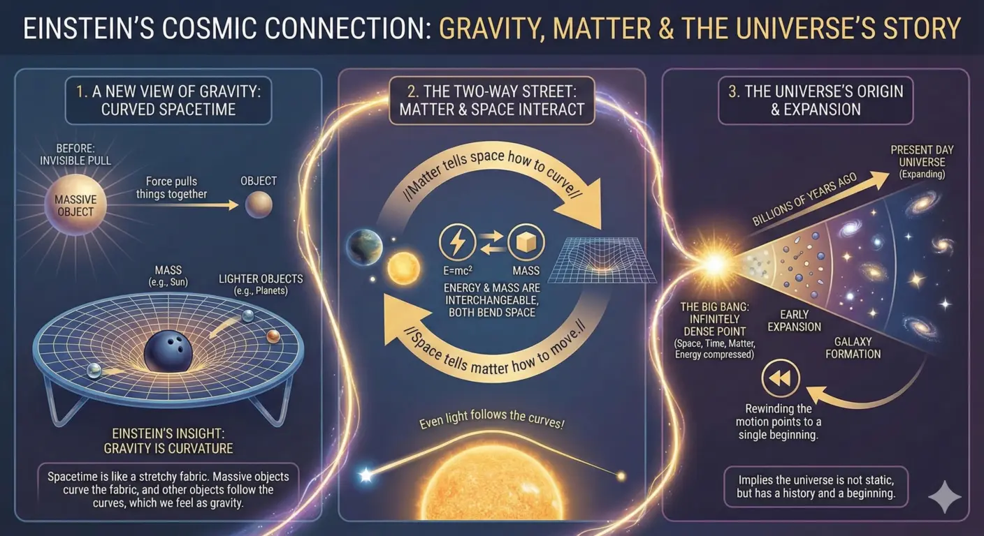 The most profound implication of this theory was for the history of the universe itself. If matter curves spacetime, then the shape and destiny of the entire universe depend on how much “stuff” is in it. Einstein’s equations suggested the universe could not just be sitting still; it had to be either expanding or contracting. This realization allowed scientists to “rewind” the motion of the expanding universe we see today. It pointed back to a single moment billions of years ago when all space, time, matter, and energy were compressed into a single, infinitely dense point, leading to the Big Bang theory—the idea that the universe, and time itself, had a beginning.