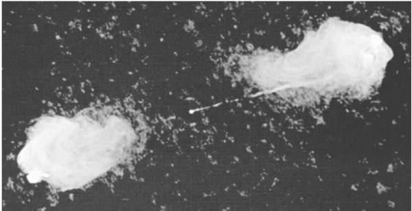 A typical radio galaxy consists of several distinct physical features that trace the flow of energy from the nucleus to intergalactic space:
