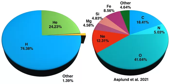 The chemical composition of the solar system is measured in two main ways: by analyzing the spectrum of light from the Sun’s photosphere, or by chemical analysis of various carbonaceous chondrites (the oldest rocks in the solar system), which fall to Earth as meteorites or are found in space. Many meteorites on Earth contain these chondrites. The element abundances in chondrites can be measured very precisely, but it is uncertain whether those quantities were the same when the solar system formed, because over billions of years, many volatile elements may have been lost. In contrast, analyzing the Sun’s photosphere gives a better idea of the original solar nebula. But that analysis is less accurate than chondrite studies—it’s hard to determine element abundances from light spectra alone.