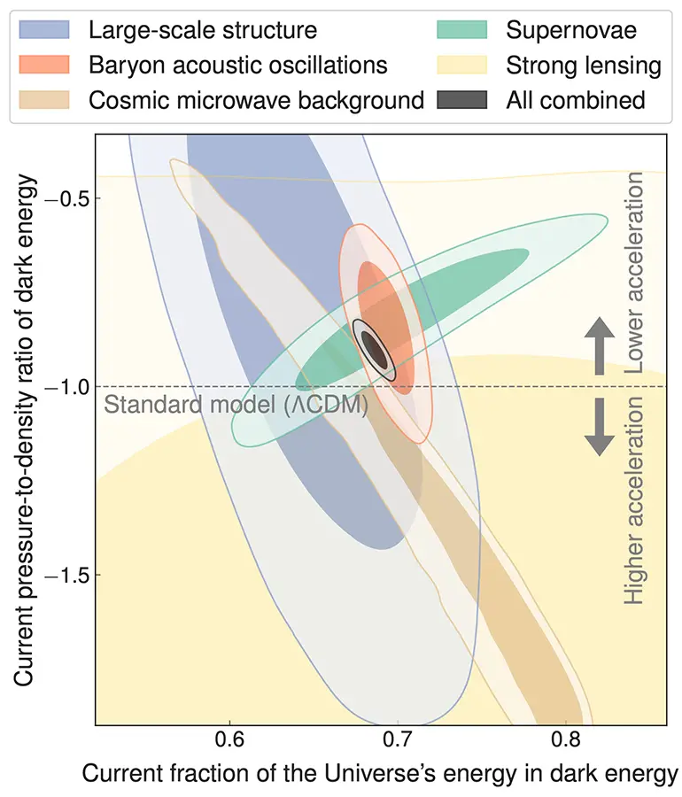 ডার্ক এনার্জি এমন জিনিস যার কারণে মহাবিশ্বের প্রসারণের হার বাড়ছে, এটা ইউনিভার্সের সবচেয়ে বড় রহস্যের একটা। বর্তমানের সবচেয়ে সমর্থিত তত্ত্বে ডার্ক এনার্জিকে ধ্রুব ধরে নেয়া হয়, এবং শূন্যস্থানের শক্তিকে বলা হয় মহাবিশ্বের ত্বরণের কারণ। কিন্তু গত বছর ডার্ক এনার্জি সার্ভে (ডেস) এবং ডার্ক এনার্জি স্পেক্ট্রোস্কপিক ইন্সট্রুমেন্ট (ডেসি) যখন ডার্ক এনার্জির বিবর্তন বা পরিবর্তনের দিকে ইঙ্গিত করে, তখন কসমোলজি কমুনিটিতে অনেক উদ্দীপনা তৈরি হয়। “এটাই হতে পারে আমাদের পাওয়া প্রথম নিদর্শন যে ডার্ক এনার্জি ১০০ বছর আগে আইনস্টাইনের বলা কসমোলজিকেল কন্সটেন্ট না, বরং অন্য রকমের এক ডায়নামিক পরিবর্তনশীল জিনিস,” বলেছেন শিকাগো বিশ্ববিদ্যালয়ে এস্ট্রোনমি ও এস্ট্রোফিজিক্সের এমেরিটাস অধ্যাপক জশ ফ্রিম্যান।
